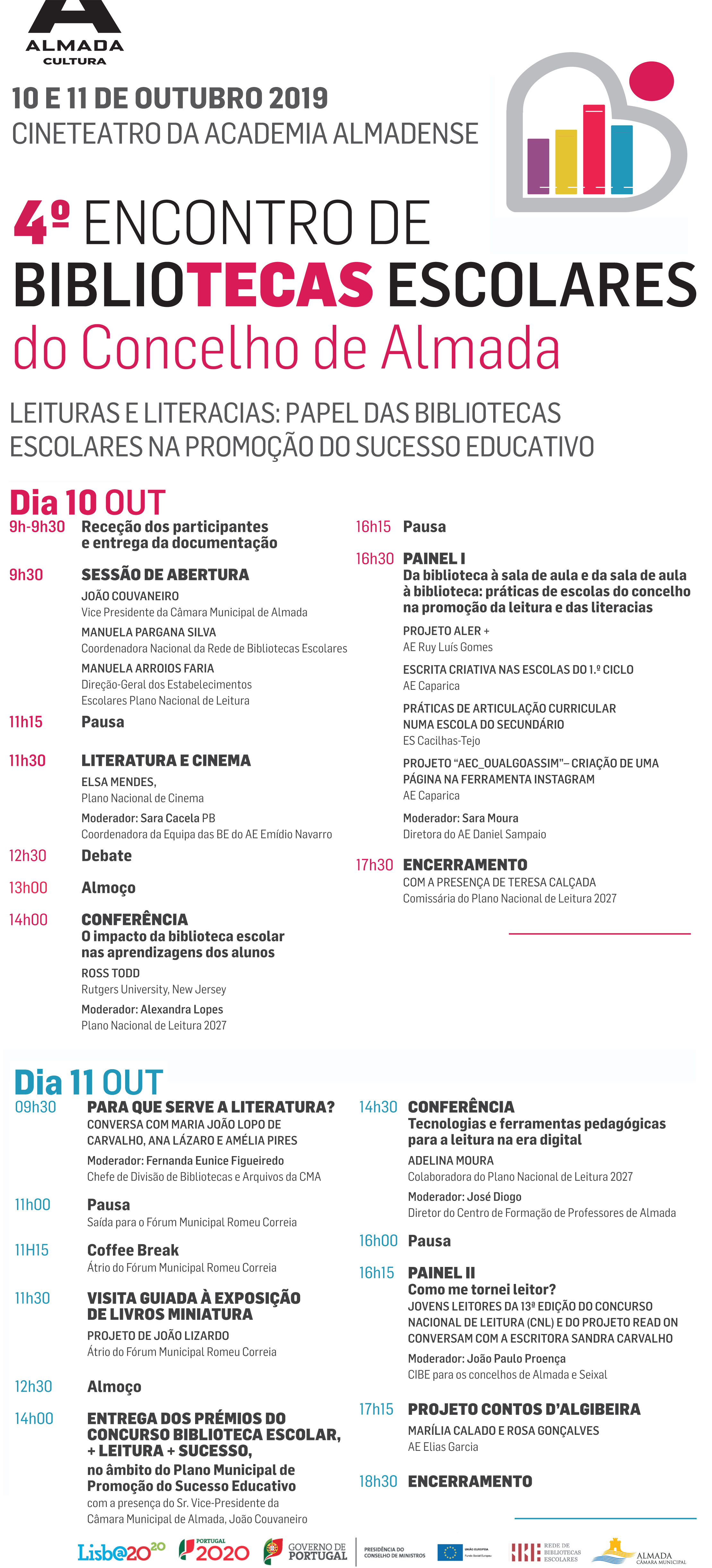 De 10 a 11 de outubro ocorre o 4.º Encontro de Bibliotecas Escolares do Concelho de Almada no Cineteatro Academia Almadense.