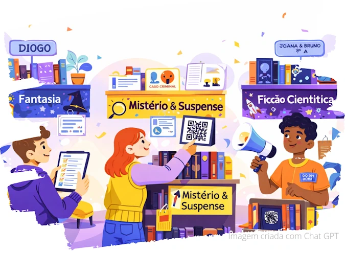 Observações Os expositores devem situar-se estrategicamente em zonas de lazer, posicionados em frente a assentos confortáveis (sofás e poltronas). Esta integração visa potenciar a leitura de fruição no local e facilitar o manuseamento informal do acervo selecionado. Para reforçar a consistência do projeto e o envolvimento dos alunos, poderão ser utilizados instrumentos de apoio: