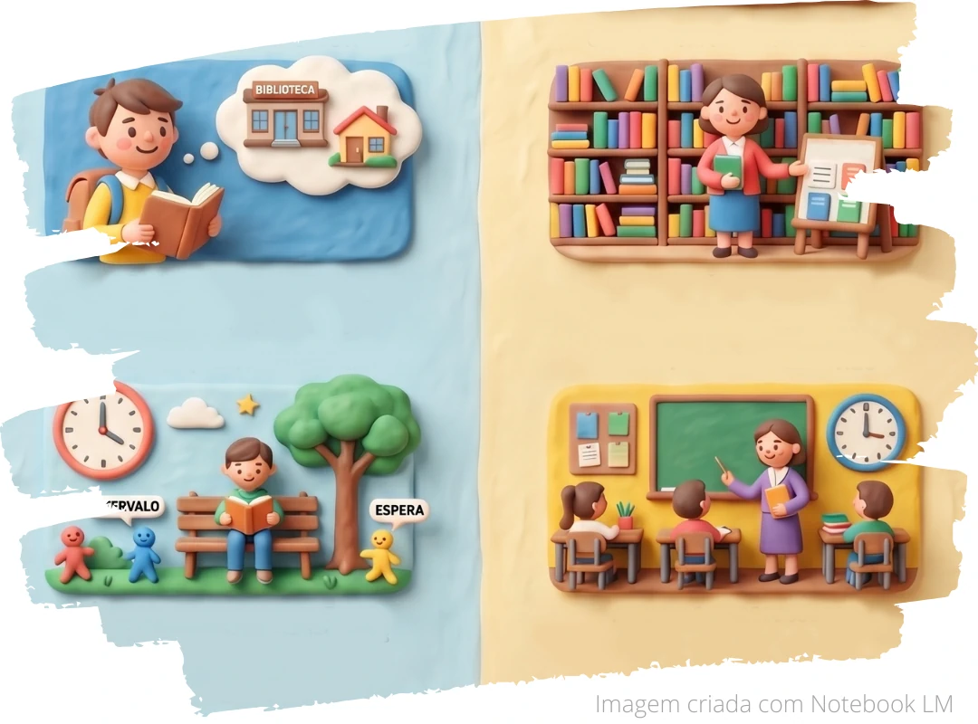 - criação de uma pequena reserva de livros na sala ou acesso facilitado a livros da biblioteca, para situações pontuais.