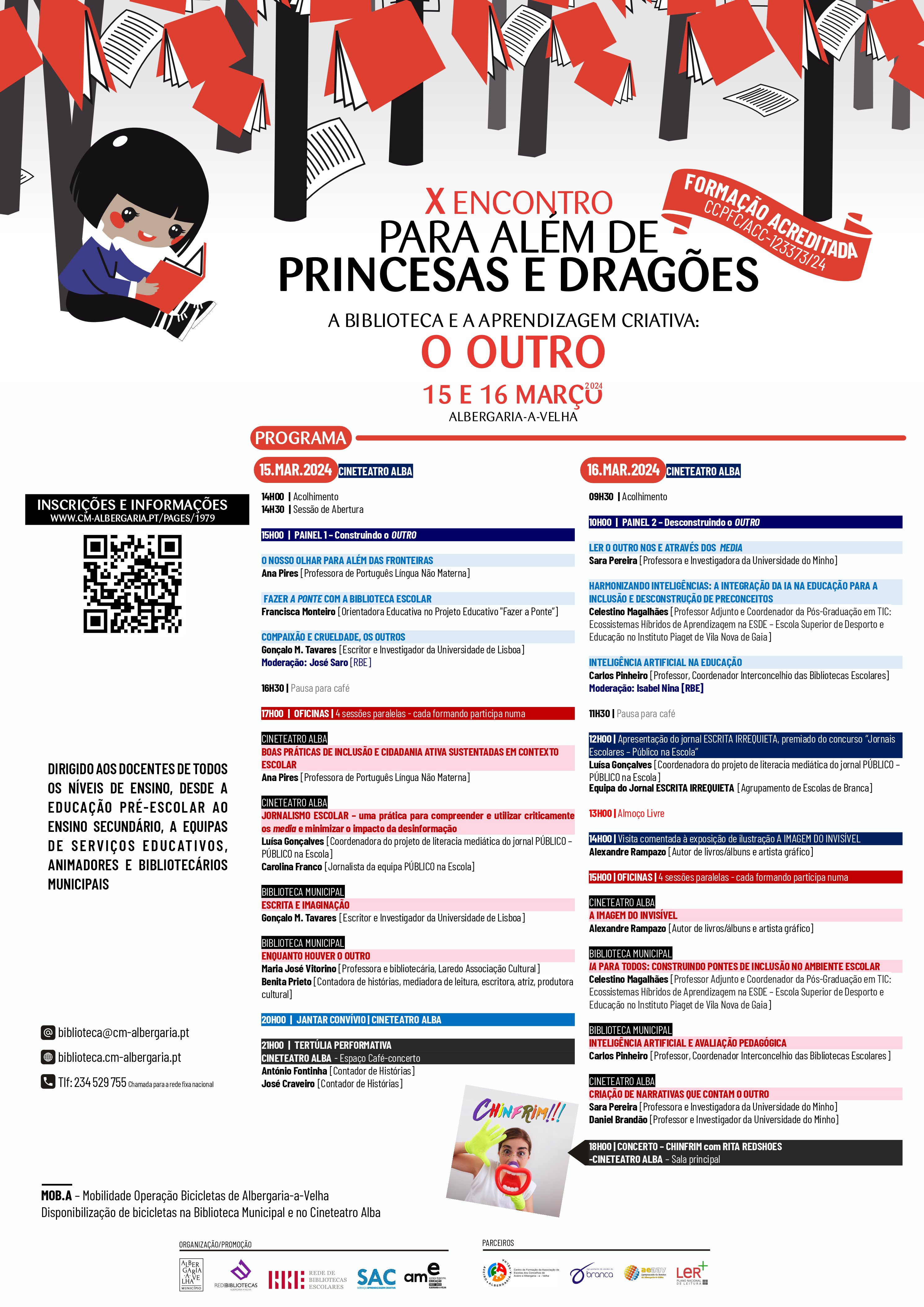 Promovido pelo Município de Albergaria-a-Velha e organizado em articulação com a sua Rede Concelhia de Bibliotecas, Rede de Bibliotecas Escolares e Centro de Formação de Associação de Escolas de Aveiro e de Albergaria-a-Velha, o Encontro pretende (des)construir o Outro, através do fomento de práticas inclusivas, promotoras do diálogo intercultural, e da reflexão em torno do ecossistema comunicativo e mediático.
