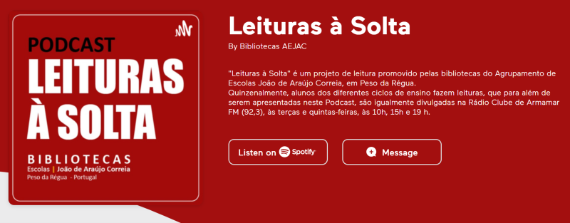 Projeto transversal a todos os ciclos de ensino do agrupamento, que consiste na produção mensal de um programa de rádio, durante o qual são lidos textos de autor ou textos produzidos pelos alunos e convidados.