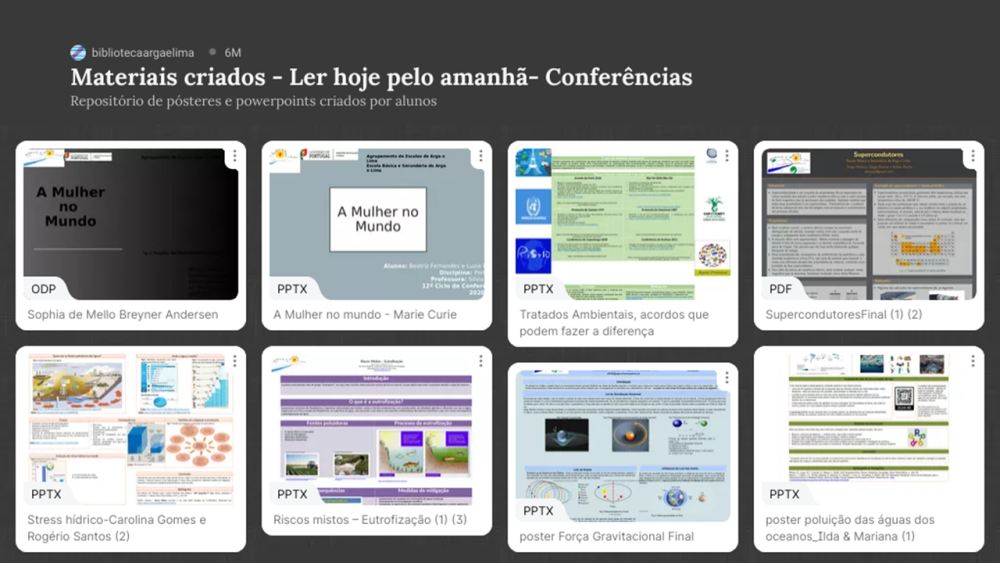 Repositório de pósteres e powerpoints criados por alunos https://padlet.com/bibliotecaargaelima/materiaisconferencias