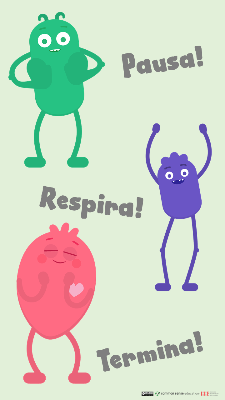 - Jogo para dizer adeus aos dispositivos: Pausa! Respira! Termina! Apresentar às crianças um poster para colar na parede da sala (Ver recurso de apoio).